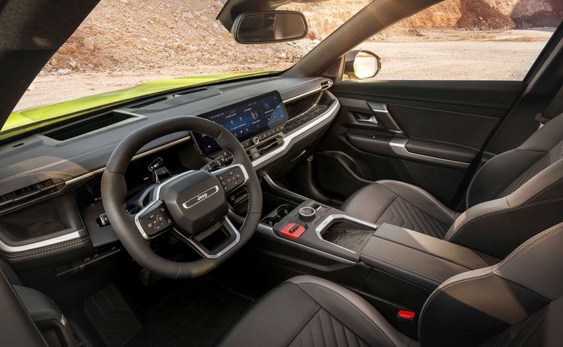 Wybierając napęd, warto pamiętać, że Compass nie traci przy tym swojej terenowo-użytkowej tożsamości. Wszystkie wersje mają prześwit 200 mm, ale różnią się głębokością brodzenia. W e-Hybrid to 408 mm, natomiast plug-in i BEV oferują już 470 mm. Do tego dochodzi Selec-Terrain, czyli system zarządzania trakcją, który pomaga lepiej dopasować auto do warunków panujących na drodze. Krótko mówiąc, niezależnie od napędu, wciąż jest tu obecne to poczucie, że możesz zjechać z głównej drogi bez stresu, że samochód zaraz zacznie protestować.