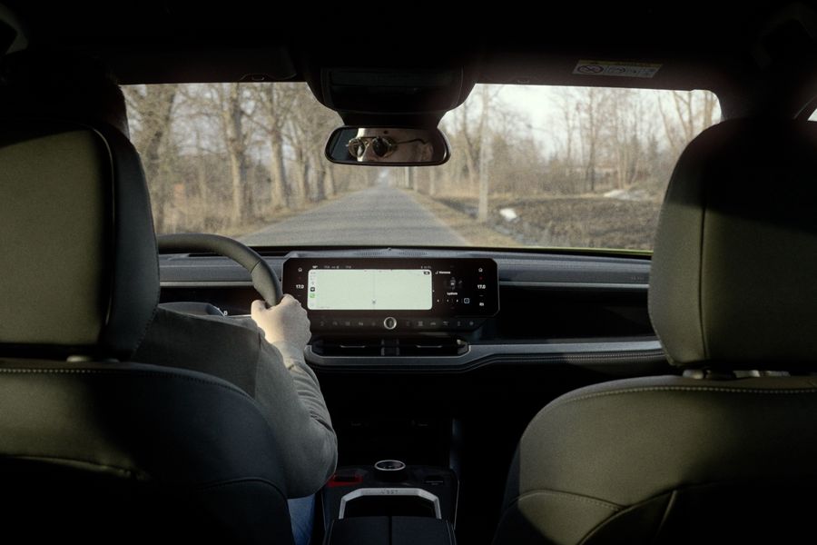 Z jednej strony dostajesz auto mocno osadzone w teraźniejszości. Już w wyposażeniu pojawiają się rozwiązania, których oczekuje się dziś od nowoczesnego SUV-a: 16-calowy ekran systemu multimedialnego, 10,25-calowy panel wskaźników, bezprzewodowe Apple CarPlay i Android Auto, nawigacja, usługi łączności, adaptacyjny tempomat, pozycjonowanie na pasie ruchu, automatyczne hamowanie awaryjne i jazda autonomiczna poziomu 2. To nie są gadżety dla samej listy wyposażenia – to systemy, które w realnej jeździe po prostu zdejmują z kierowcy część zmęczenia i pozwalają skupić się na samej podróży.