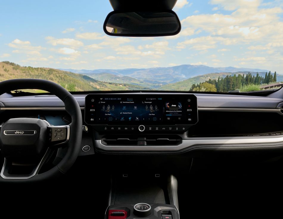 W praktyce czuć to choćby w obecności systemu zarzadzania trakcją – Selec-Terrain – z 4 trybami jazdy, który pojawia się w wyposażeniu jako stały element "jeepowego" DNA. To nie jest opcja do popisywania się przed znajomymi, tylko narzędzie, które przydaje się wtedy, gdy warunki robią się mniej przewidywalne. Do tego dochodzą proporcje i parametry, które wciąż przypominają, że mamy do czynienia z Jeepem: prześwit 200 mm, korzystne kąty terenowe i głębokość brodzenia 408 mm w wersjach e-Hybrid oraz 470 mm w odmianach plug-in i elektrycznej.